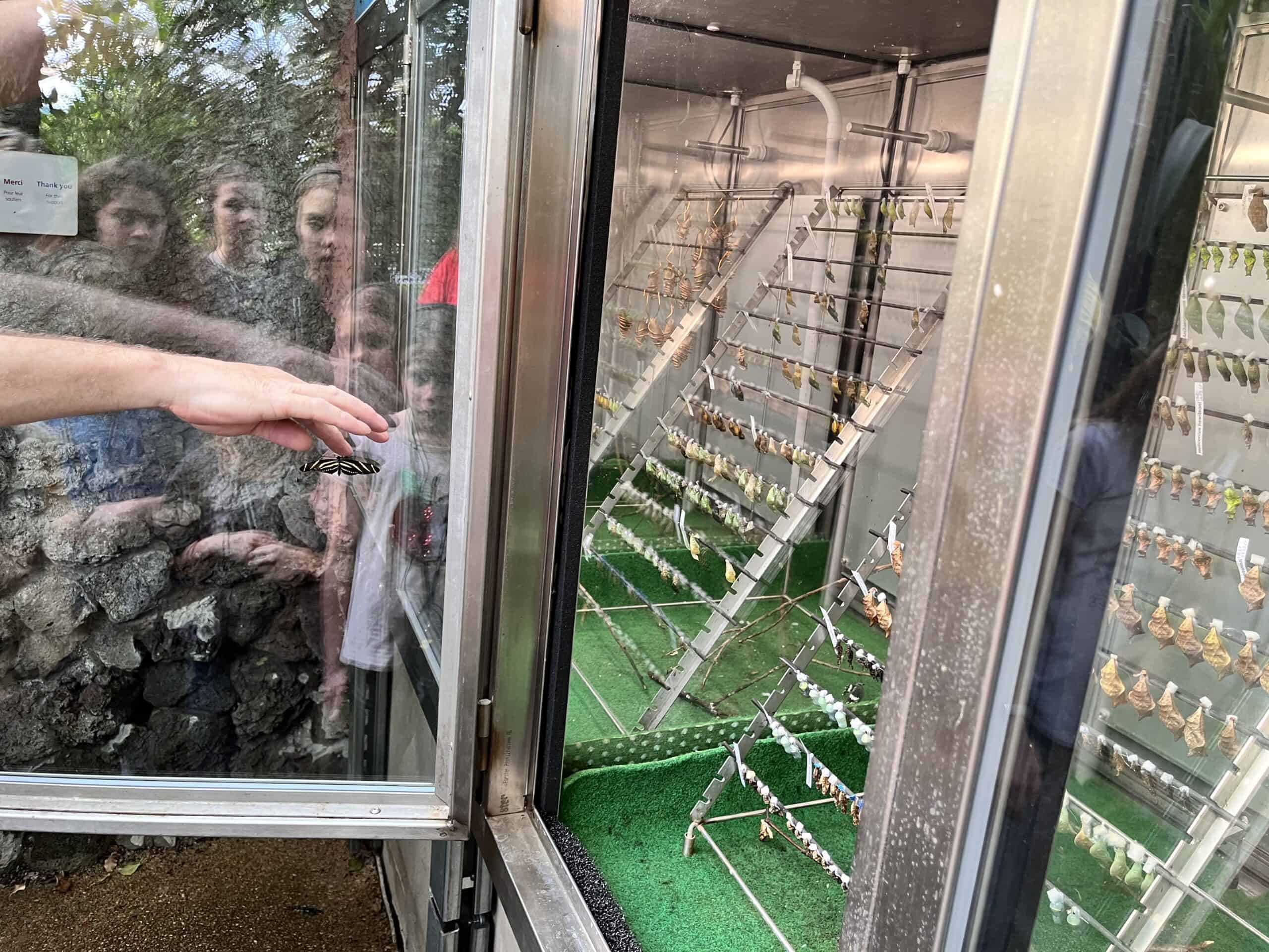 Als Letztes ging es in den Schmetterlings-Dom Papiliorama wo über 1000 exotische Schmetterlinge frei in einem grosszügigen Tropengarten herum fliegen. 120 Arten von Schmetterlingen aus den Tropfen leben hier. Die Puppen kommen aus Zuchtstationen und werden ins Papiliorama geliefert. 16 Arten konnten sich allerdings auch selbst im Schmetterlings-Dom fortpflanzen. Es gibt die Schmetterlinge in verschiedenen Grössen und den schönsten Farben und Formen. Spannend für uns alle war es, die verschiedenen Stadien im Lebenszyklus der Schmetterlinge zu entdecken. So konnten wir das Schlüpfen eines Schmetterlings aus einer Puppe im Schlupfkasten beobachten und nachdem die Flügel des Schmetterlings getrocknet waren, wie unser Guide diesen in die «Freiheit» des Schmetterlings-Doms entlassen hat. Mit rund 120 tropischen Arten ist die Pflanzenwelt hier vertreten und so auch eine der Nahrungsquellen der Schmetterlinge. Natürlich bekommen die Schmetterlinge auch noch künstliches Nektar als Zusatznahrung bereitgestellt.
