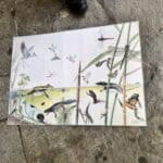 Zum Einstieg zeigte uns Nicolas ein großes Plakat mit verschiedenen Tieren und Pflanzen darauf. Zum ersten Mal testete er unser Wissen: Wir durften sagen, welche Tiere uns rund um den Teich bekannt sind oder die wir schon einmal gesehen haben. Monika und ich staunten nicht schlecht, als wir sahen, wie viele Tiere erkannt wurden. Da waren zum Beispiel Teich- und Wasserläufer, Molche, Libellen/Libellenlarven, eine Eintagsfliege, verschiedene Schneckenarten und ein Frosch dabei. Uns wurde aber gesagt, dass wir heute bestimmt nicht alle Tiere zu sehen bekommen werden. Das hängt von der Jahreszeit, aber auch vom Wetter ab.
